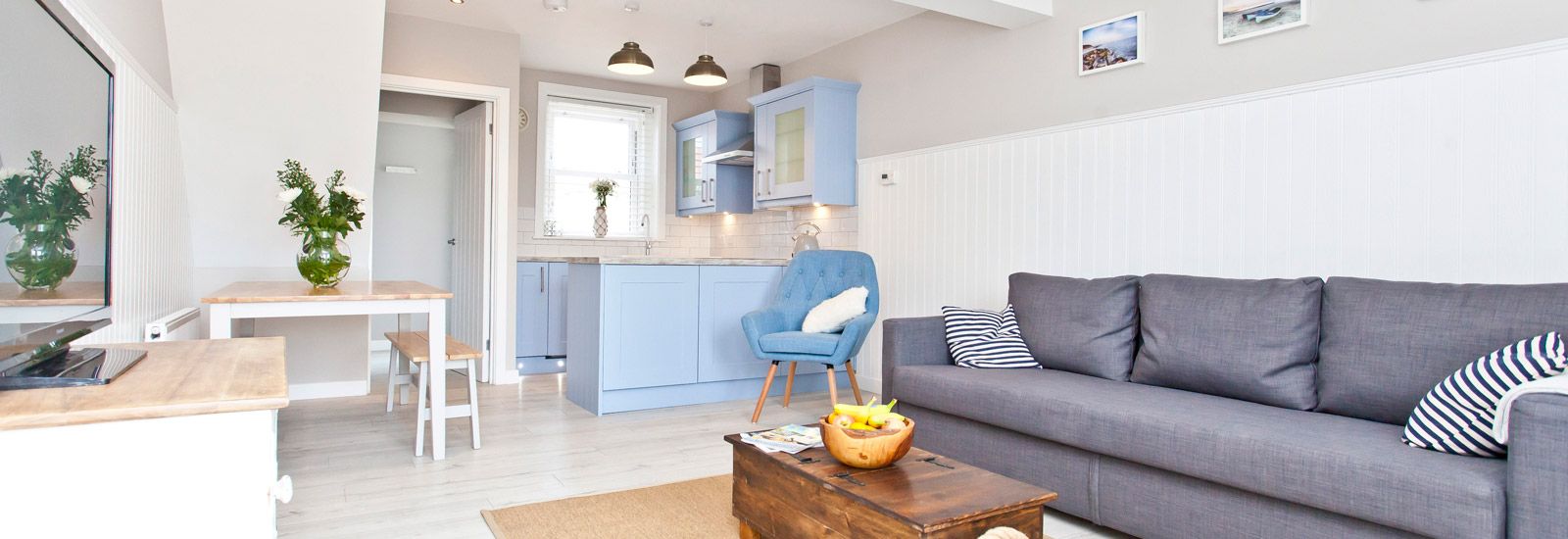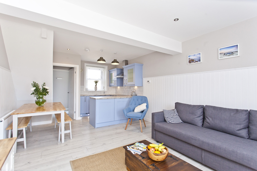 Seaside Cottage has 2 double bedrooms. Bedroom one has a king size or twin beds, sea view & en-suite shower. Bedroom 2 has a double bed with beautiful sea views. There is also a comfy double sofa bed available.